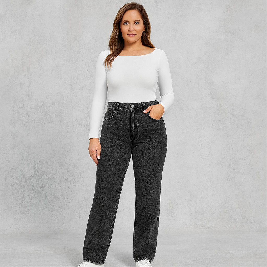 HOLMES - Damjeans Hög Midja Vida Ben Svart Denim – Trendiga Byxor för Kvinnor