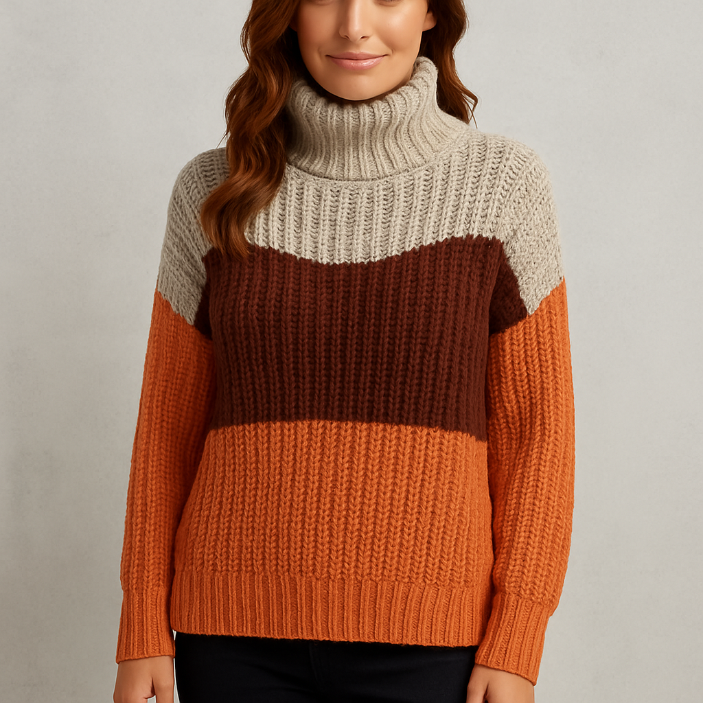 HOLMES – RueChic Stickad Polokrage Damtröja – Färgblockad, Mjuk & Varm Långärmad Tröja för Höst & Vinter